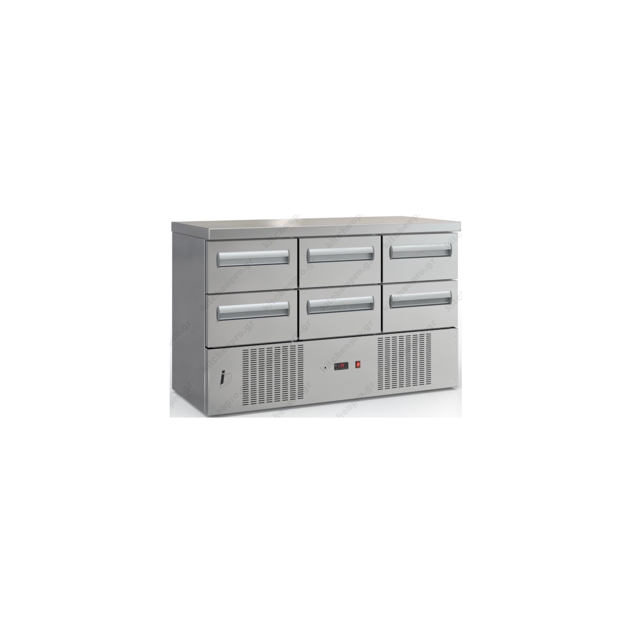 Επαγγελματικό Ψυγείο Πάγκος-Συντήρηση 135 x 60 εκ. με 6 Συρτάρια PSM13560DM/6SIR DOBROS INOX Ελλάδος