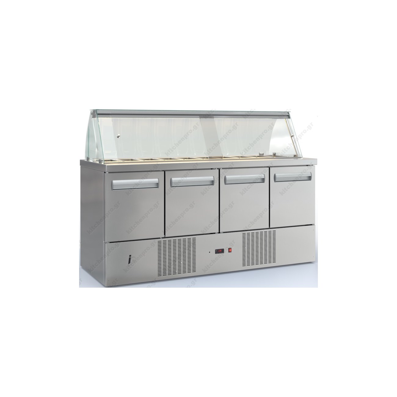 Επαγγελματικό Ψυγείο Τόστ - Σαλατών 180 x 70 εκ. 4 Πόρτες & Bιτρίνα, 2 Σειρες GN 1/4 PSM18070DM, DOBROS INOX Ελλάδος
