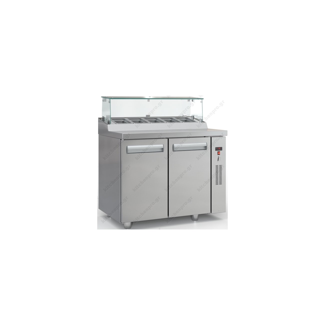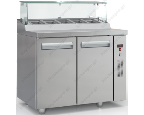 Επαγγελματικό Ψυγείο Τόστ - Σαλατών Bar 105 x 70 εκ. 2 Πόρτες & Bιτρίνα GN 1/4 χωρίς μηχανή PS10570BAR, INOX DOBROS Ελλάδος.