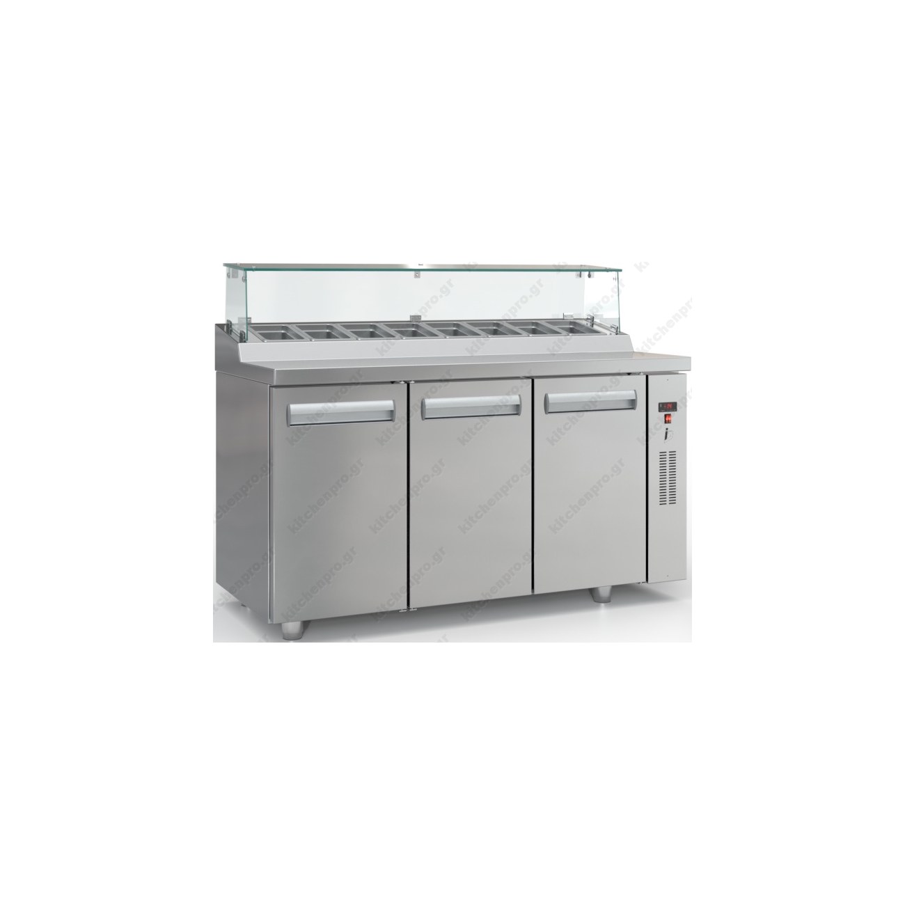 Επαγγελματικό Ψυγείο Τόστ - Σαλατών Bar 150 x 70 εκ. 3 Πόρτες & Bιτρίνα GN 1/4 χωρίς μηχανή PS15070BAR, INOX DOBROS Ελλάδος