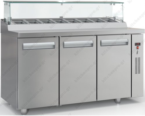 Επαγγελματικό Ψυγείο Τόστ - Σαλατών Bar 150 x 70 εκ. 3 Πόρτες & Bιτρίνα GN 1/4 χωρίς μηχανή PS15070BAR, INOX DOBROS Ελλάδος.
