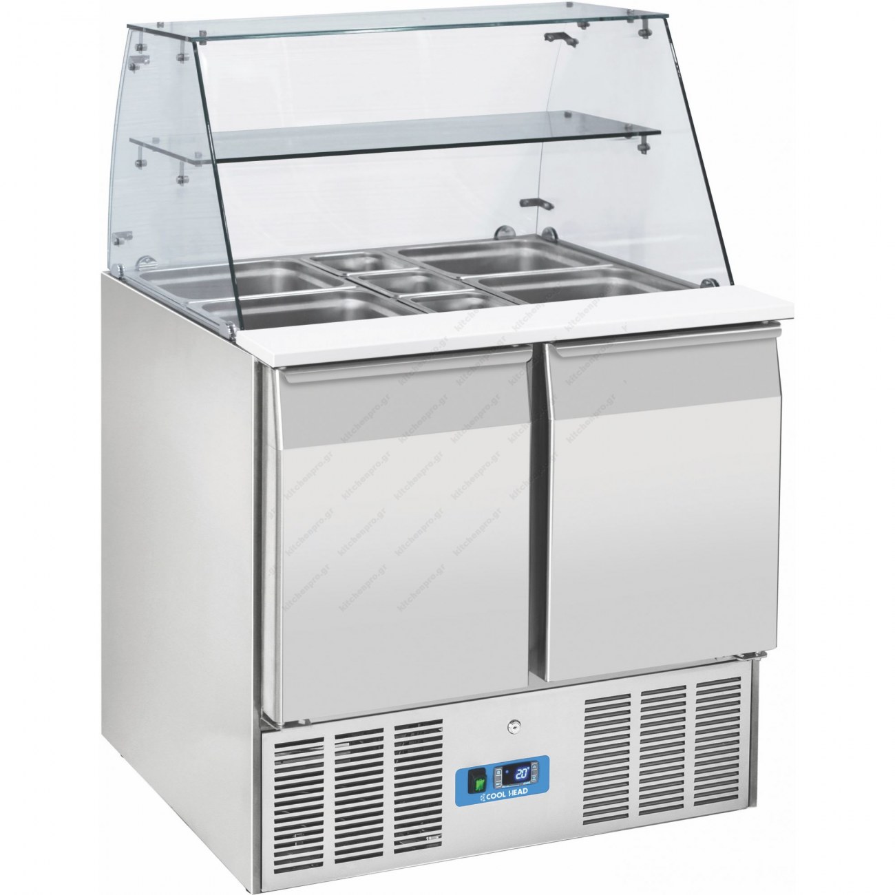 Επαγγελματικό Ψυγείο Πάγκος Τοστ - Σαλατών 90 x 70 εκ. 2 Πόρτες & Βιτρίνα GN 1/1 CRQ90A COOLHEAD Ιταλίας