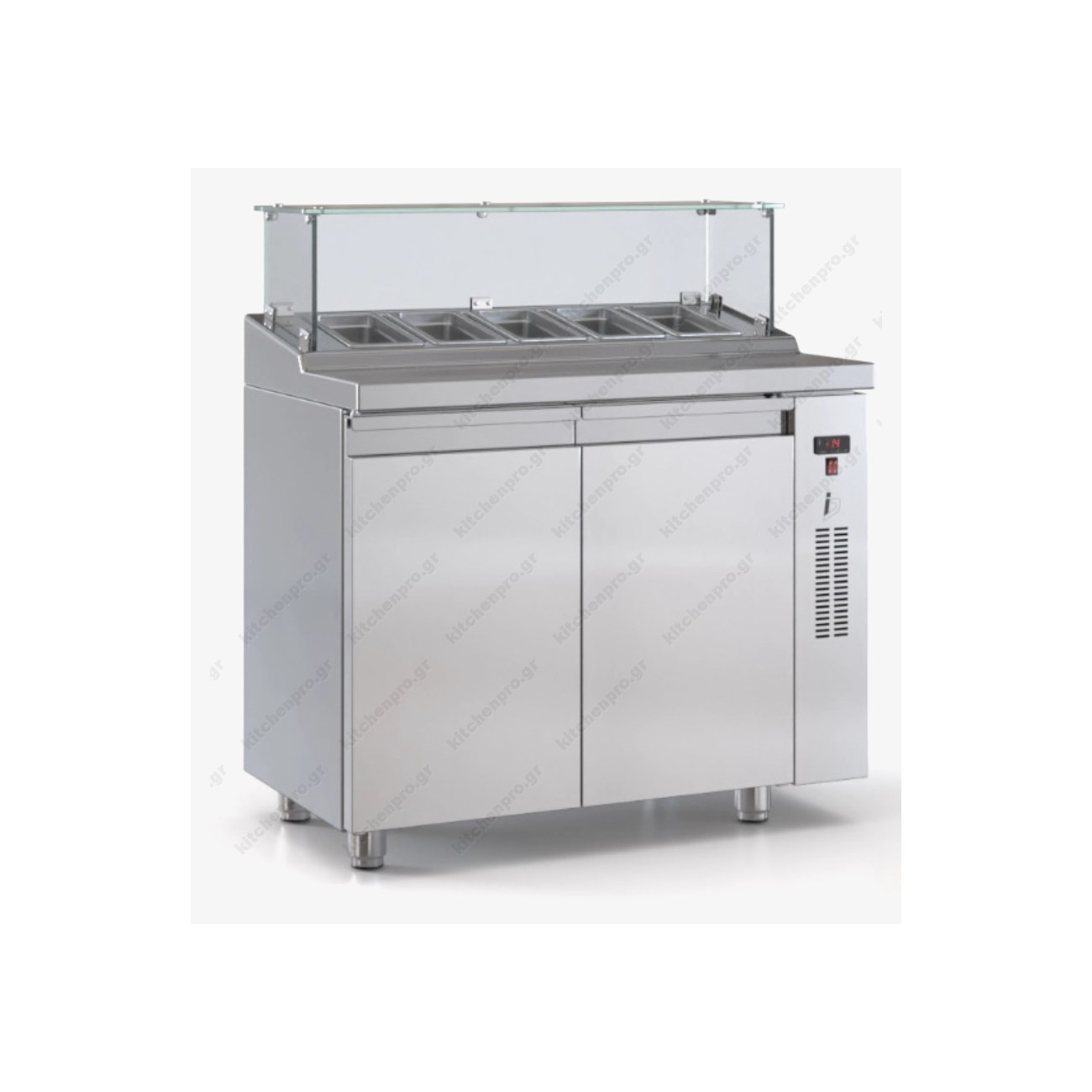 - Βιτρίνα για με θέση για τοποθέτηση 1 σειράς (5TMX) λεκανών GN1/4. (Δεν συμπεριλαμβάνεται)