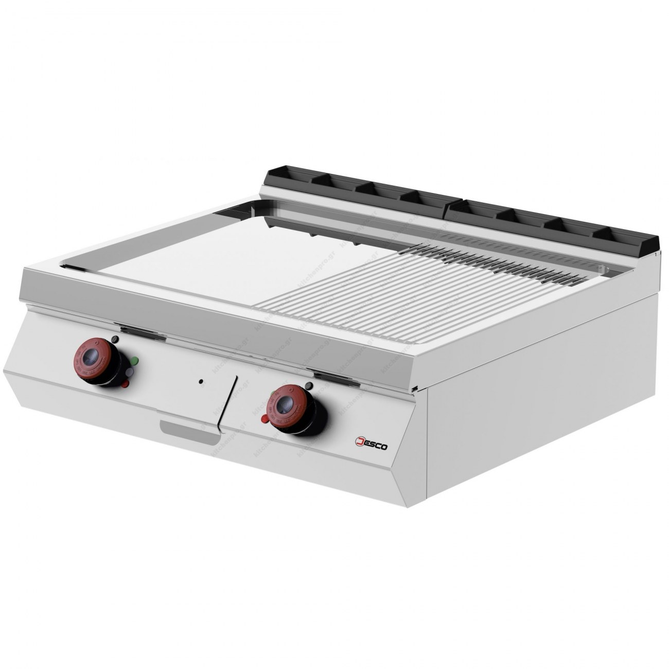 Λείο & Ραβδωτό Ηλεκτρικό Πλατό Ψησίματος Χρωμίου 80x70 εκ FTE72TF DESCO Ιταλίας.