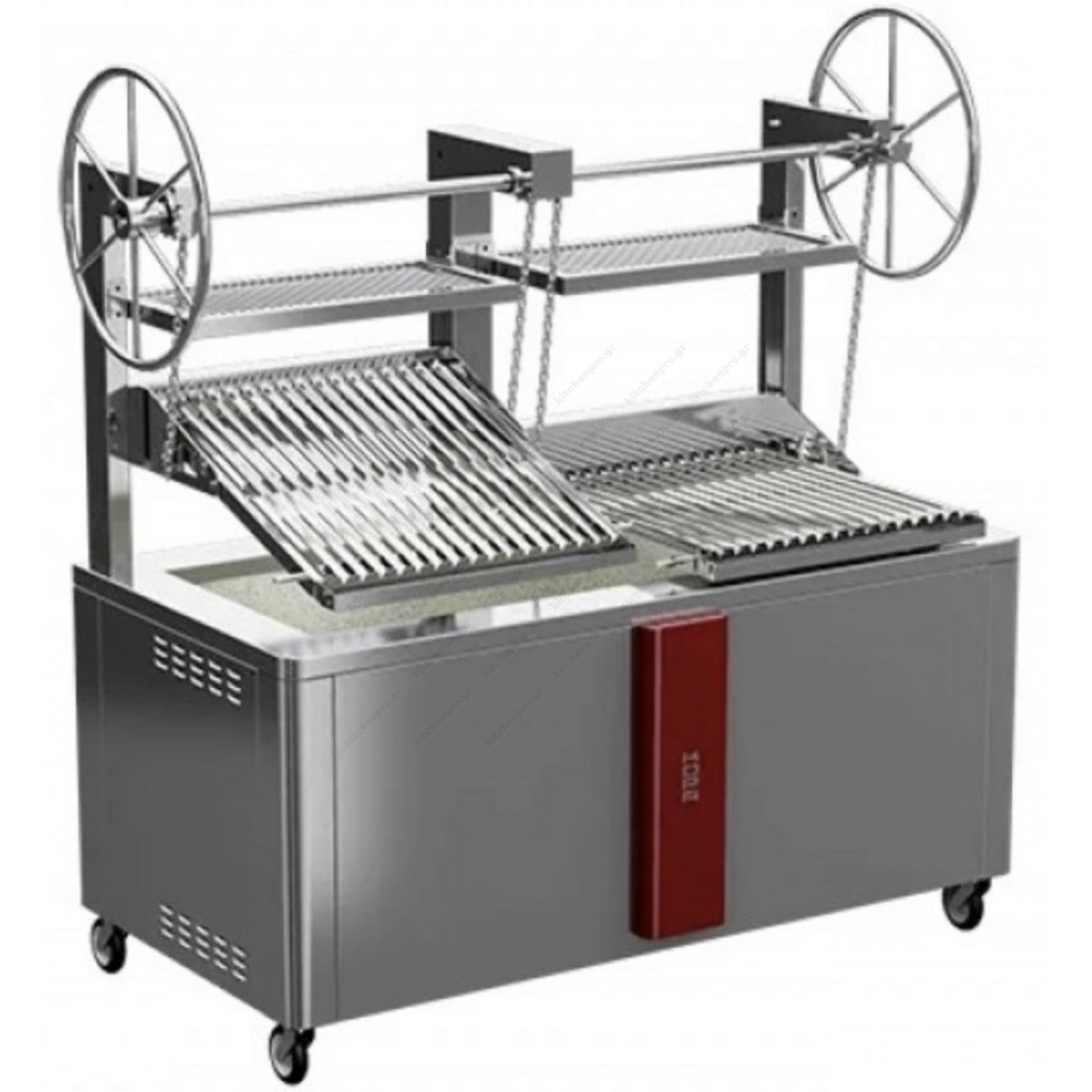 - Η σχάρα ψησίματος είναι ανυψούμενη και ρυθμιζόμνεη σε κλίση.