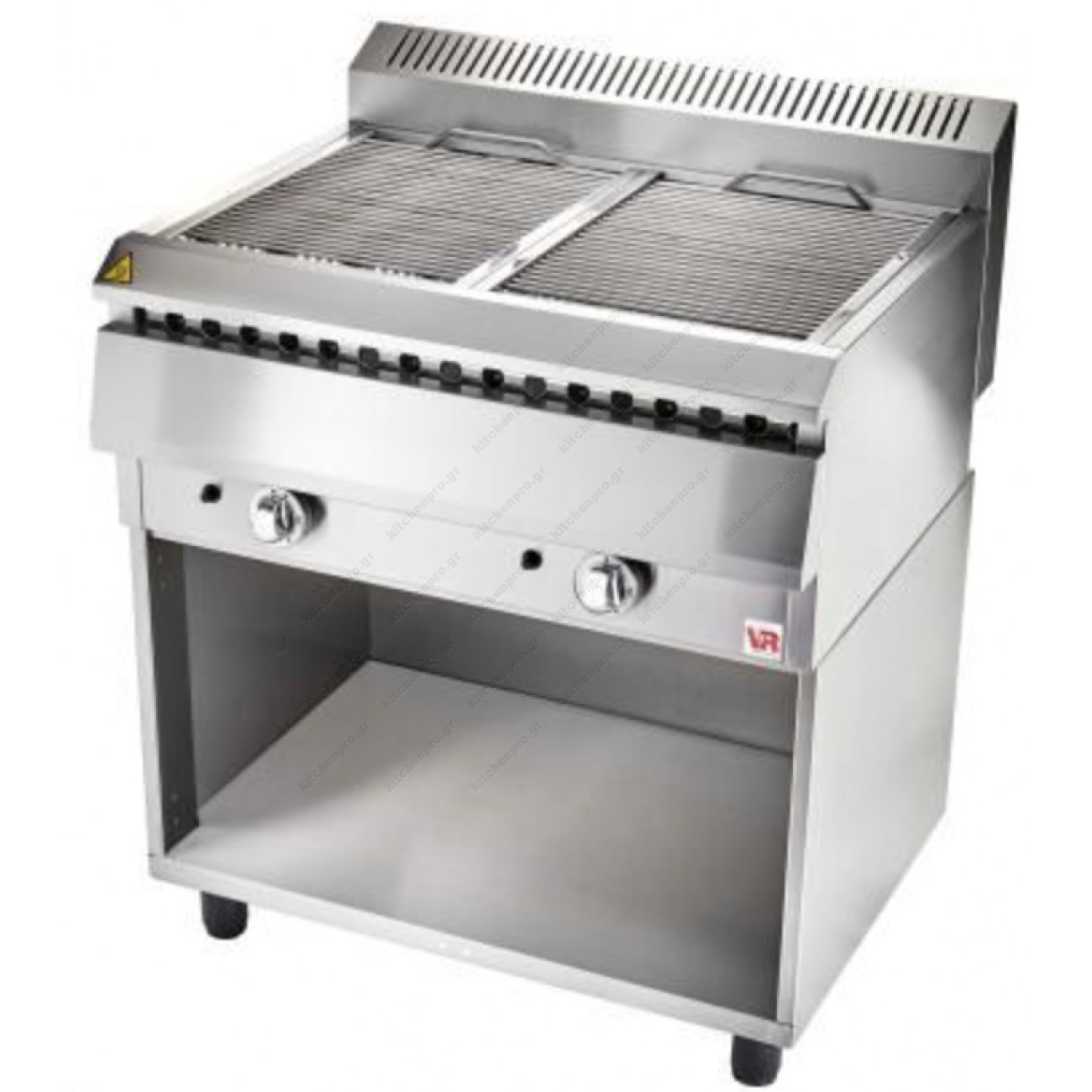 • Γκριλ γκαζιού επιδαπέδιο με συρτάρι νερού και ερμάριο ανοικτού τύπου.