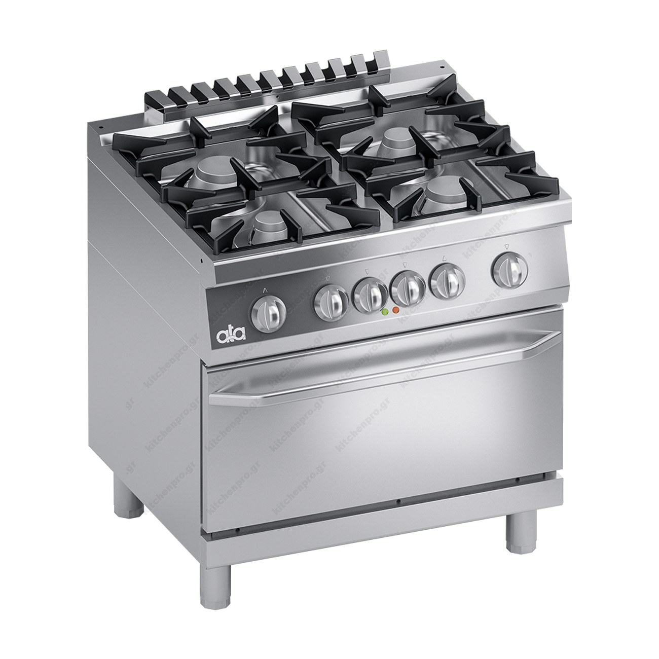 Επαγγελματική Κουζίνα 4 Εστιών Αερίου & Ηλεκτρικός (Αερόθερμος) Φούρνος 80 x 70 εκ. ‘‘High Power’’ K7MCUP10FFP ATA srl Ιταλίας