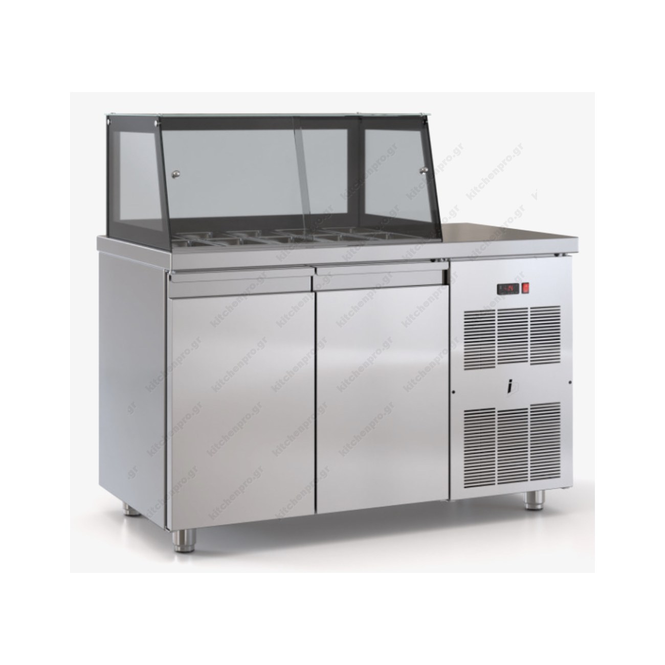 Saladette Refrigerated Counter 130 x 70 cm 2 Doors & Display, 1 Line of GN 1/4 PSM13070SALAD, INOX DOBROS Greece