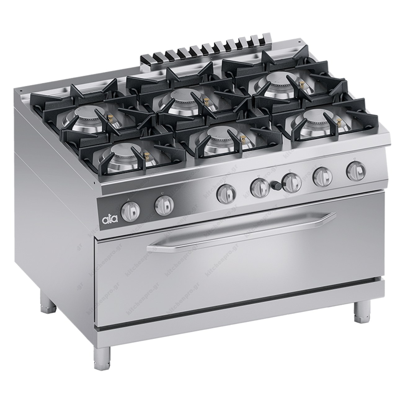 Commercial Gas Cooker 6 Ranges + Gas Oven S900 120 x 90 cm K4GCUP15FFM ATA srl Italy