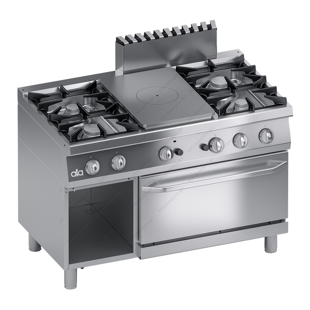 Commercial Gas Range 4 Burners + Solid Top + Gas Oven 120 x 70 cm S700 K7GCTP15FF ATA srl Italy